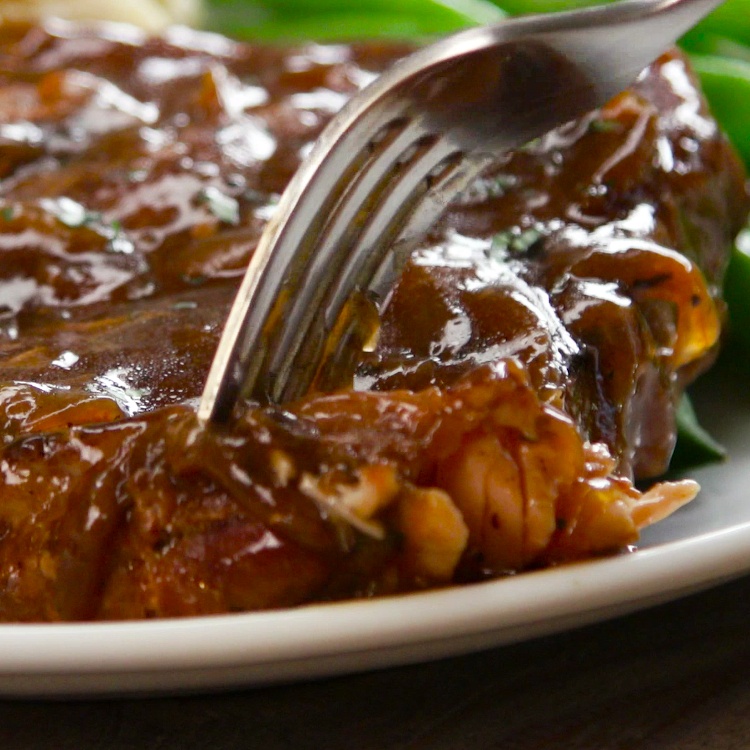 Place chops in slow cooker, smother in sauce and cook on low heat 6 hours or until fork tender.